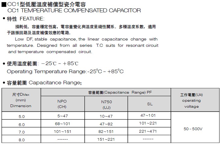 CT1-F5Y5P3B221KSP低壓高介電質常數
