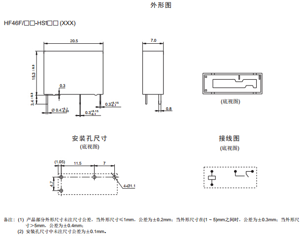 · 外形尺寸:(20.5 x 7.2 x 15.3) mm