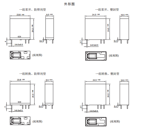 · 外形尺寸:(23.8 x 9.5 x 24.5) mm