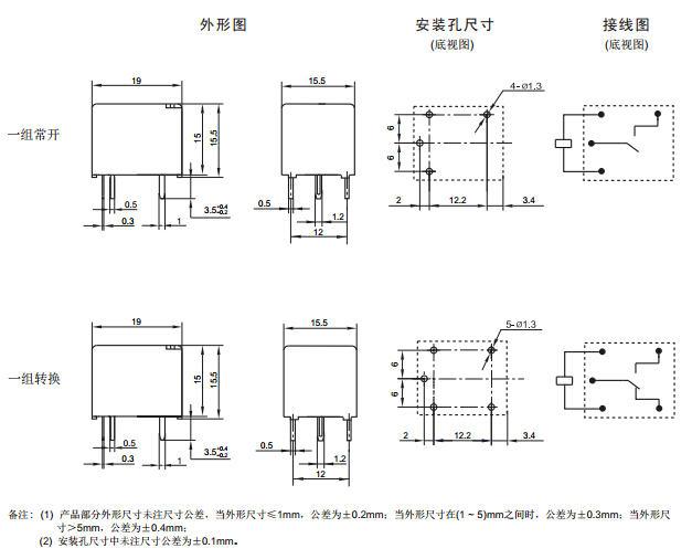 · 外形尺寸:(19.0 x 15.2 x 15.5) mm