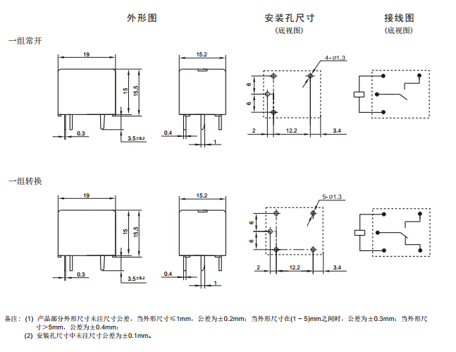 · 外形尺寸:(19.0 x 15.2 x 15.5) mm
