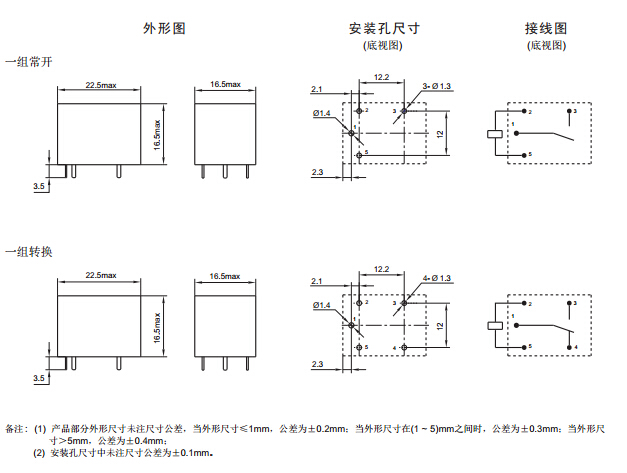 · 外形尺寸:(22.5 x 16.5 x 16.5) mm