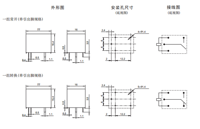 · 外形尺寸:(22.0 x 16.0 x 16.4) mm