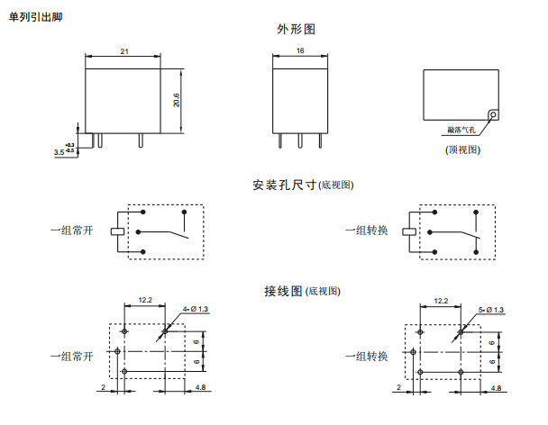 · 外形尺寸:(21.0 x 16.0 x 20.6) mm