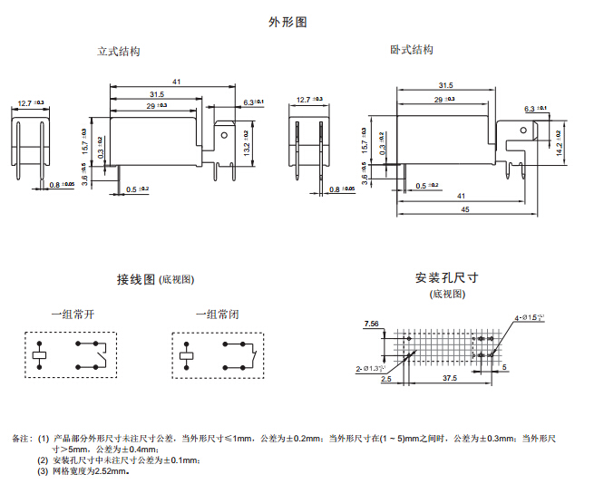 · 外形尺寸:立式:(41.0 x 12.7 x 15.7) mm