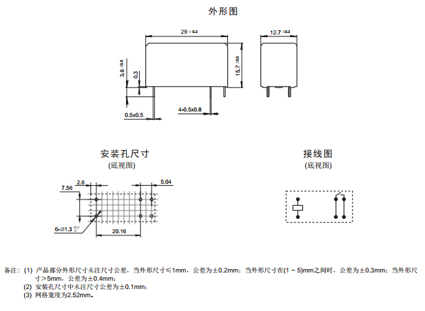 · 外形尺寸:(29.0 x 12.7 x 15.7) mm