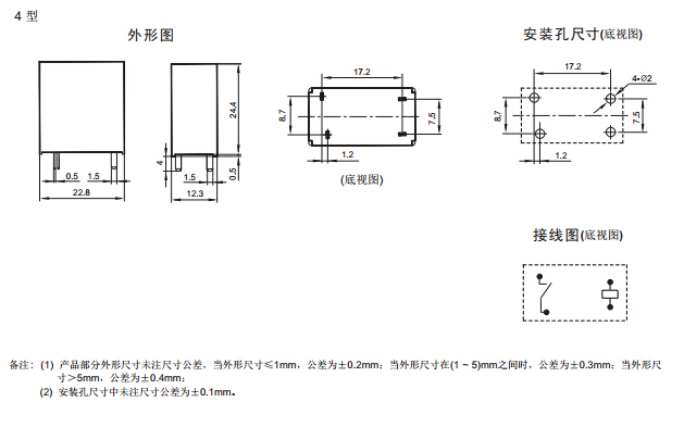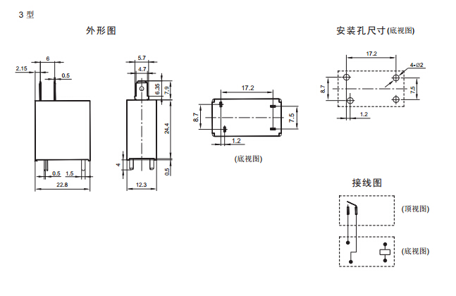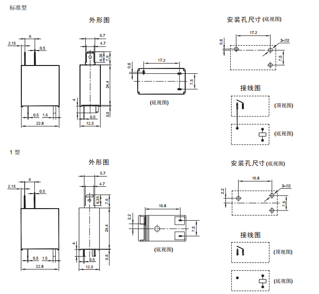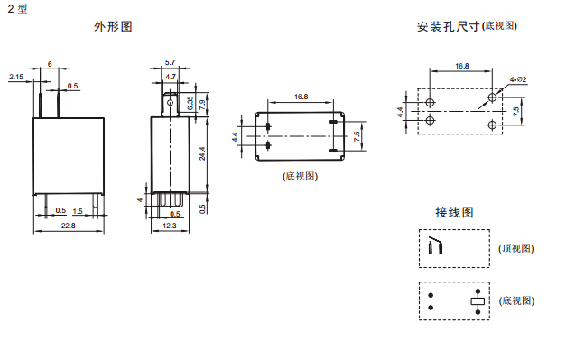 · 外形尺寸:(22.8 x 12.3 x 24.4) mm
