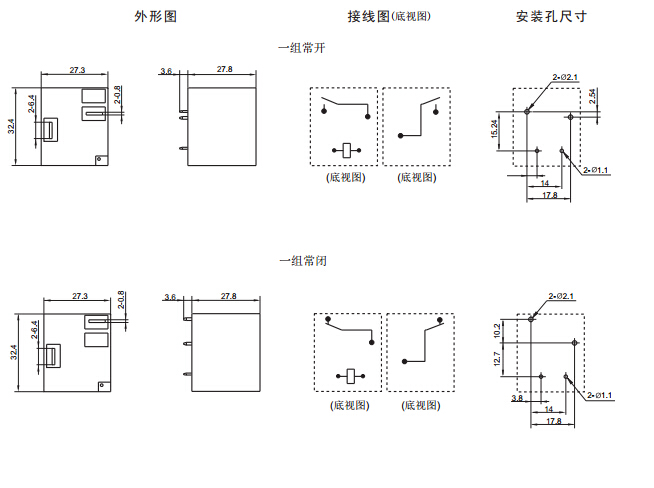 · 觸點與線圈間介質耐壓2.5kV,T型4kV