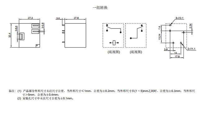 · 外形尺寸:(32.4 x 27.3 x 27.8) mm