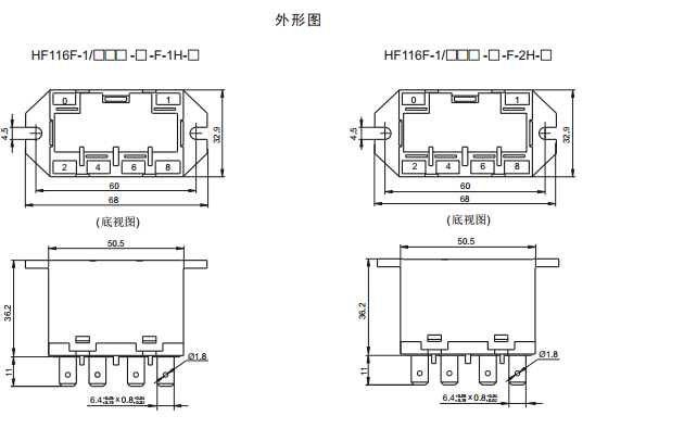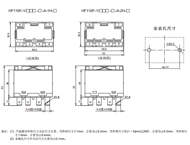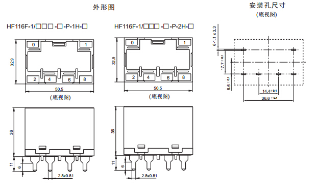 · 外形尺寸:(50.5 x 32.9 x 36.0) mm