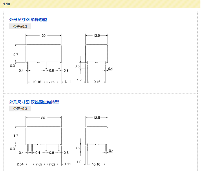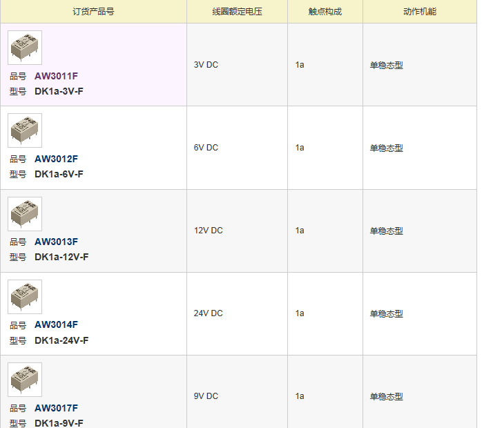產品說明:小型1a 10A、1a1b/2a 8A有極功率繼電器。