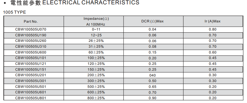 CBW100505U050T大電流磁珠