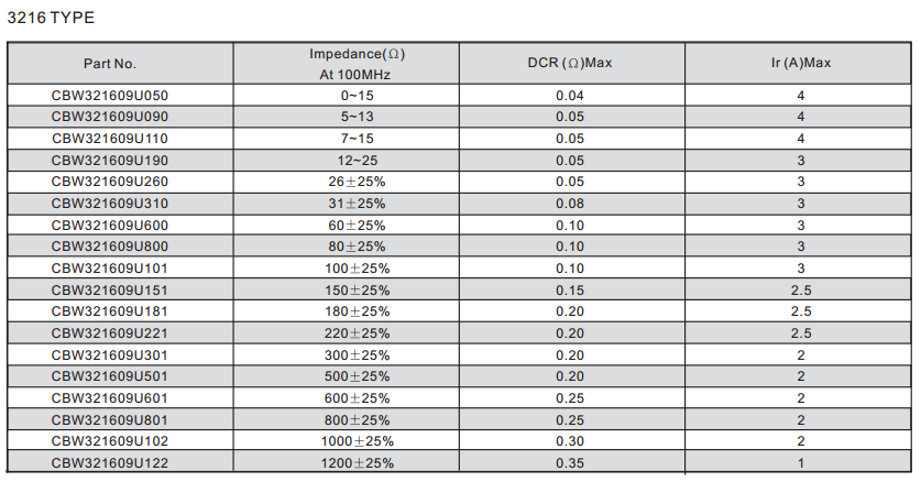 CBW321609U050T大電流磁珠