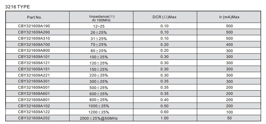 CBY321609A260T尖峰型磁珠