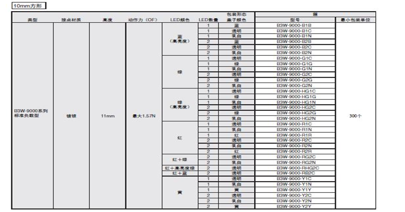 產(chǎn)品說明:B3W-9 照光式輕觸開關(guān)