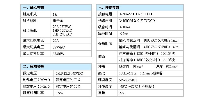 觸點容量:20A 277VAC,1HP 120VAC,2HP 240VAC