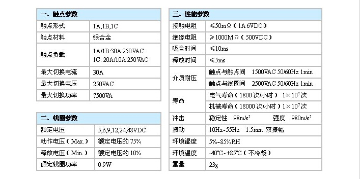 觸點容量:1A/1B:30A 250VAC 1C: 20A/10A 250VAC