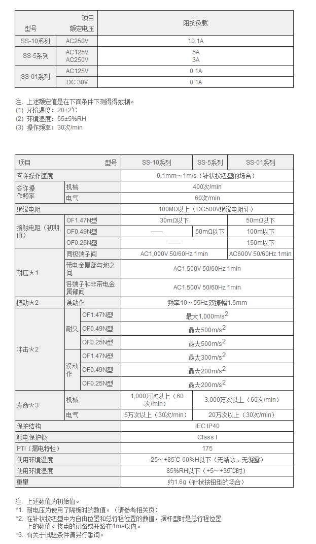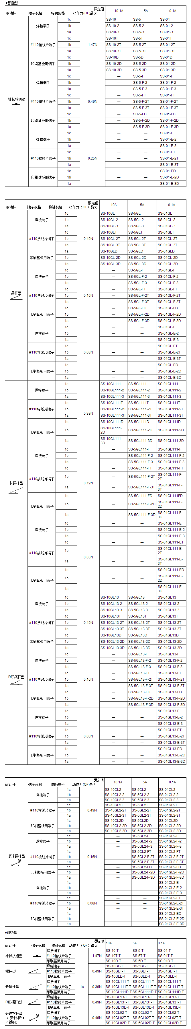 產品說明:超高安全而又可靠的超小型基本開關 ? 備有0.1A~10.1A型的各個品種,產品規格齊全,是歐姆龍最暢銷的開關。 ? 動作力規格滿足從低負載動作到高負載動作的各種用途,品種豐富。 ? 采用簡單穩定的分割2片彈簧,實現了3,000萬次的長壽命。
