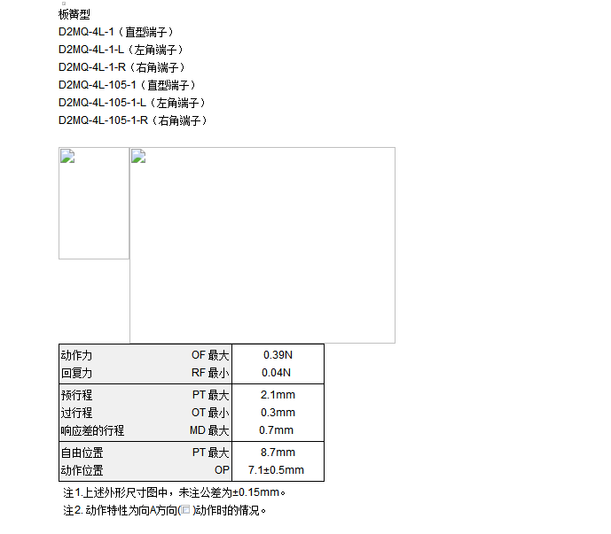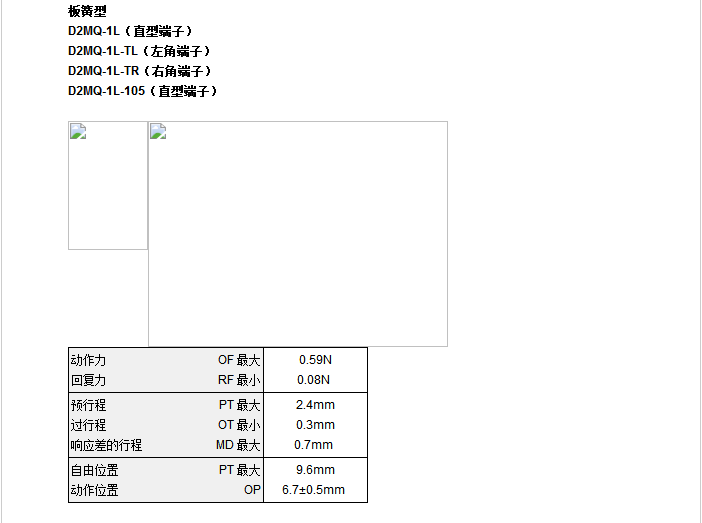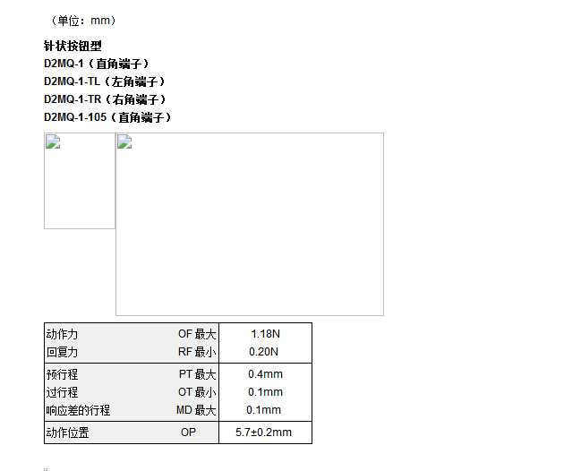 產品說明:進深2.7mm的薄型速動開關 ? 超級小型、但具有速動結構、及良好的電氣特性。 ? 可用在要求空間利用率高且高可靠性的場所