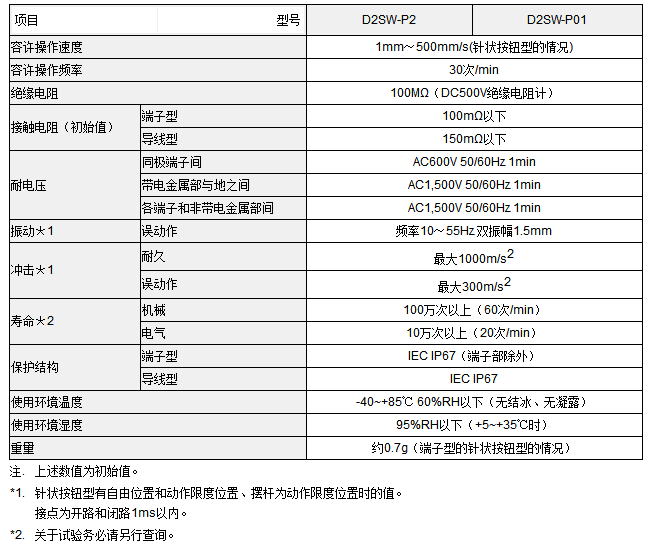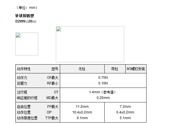 產品說明:行業內最小尺寸、可進行可靠開關的長行程開關 ? 主體部分尺寸為前代產品的78%,有利于設備的小型化。 ? 沒有擺桿也同樣使用方便的長進程規格(OT參考值:1.4mm)。 ? 不含對環境有害的物質,導致類型也實現無鉛化。