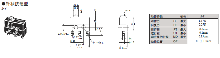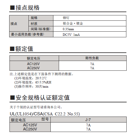 產品說明:盡管是超級小型、但可實現7A高容量開關 盡管是超級小型(8.9H×12.7W×5.1Dmm),但仍可作為控制用 開關在安裝空間和重量受到限制的場合使用。