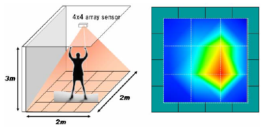 4x4 單元傳感器輸出各要素的16 種合計溫度值。有人存在時,檢測到的溫度比較高。