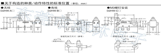 2、密封型超小開關社內(nèi)最小尺寸微動開關D2HW-C203ML