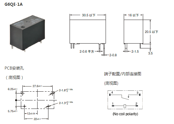 下面是OMRON歐姆龍功率繼電器G6QE系列具體參數描述: