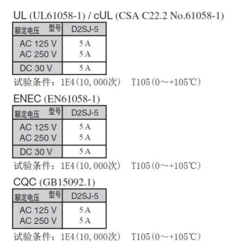 對歐姆龍而言,安全向來重要。歐姆龍D2SJ的額定電壓、額定電流均達到中國CQC、北美UL和歐洲ENEC的安全標準,并全面落實中國、北美和歐洲GB15092.1UL61058-1EN61058-1要求的指標。值得一提的是歐姆龍D2SJDC 500V 時,絕緣電阻可達100MΩ以上,電阻阻值越大,流過它的電流越小,故使用起來也就越安全。