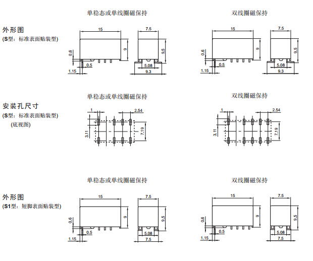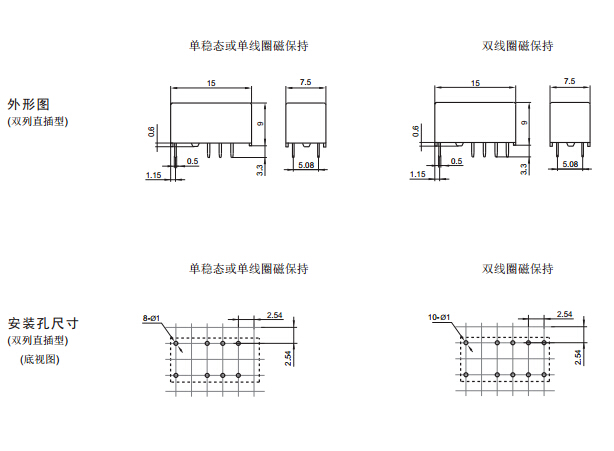 產(chǎn)品說明: 第三代信號(hào)繼電器 · 觸點(diǎn)與線圈間抗浪涌電壓2.5kV · 符合EN60950/EN41003 · 可提供表面貼裝型產(chǎn)品 · 采用分叉觸點(diǎn)形式 · 單穩(wěn)態(tài)和磁保持型產(chǎn)品可供選擇 · 環(huán)保產(chǎn)品 (符合RoHS) · 外形尺寸:(15.0 x 7.5 x 9.0) mm
