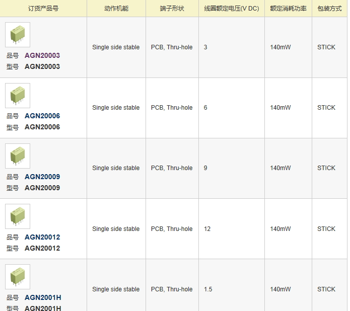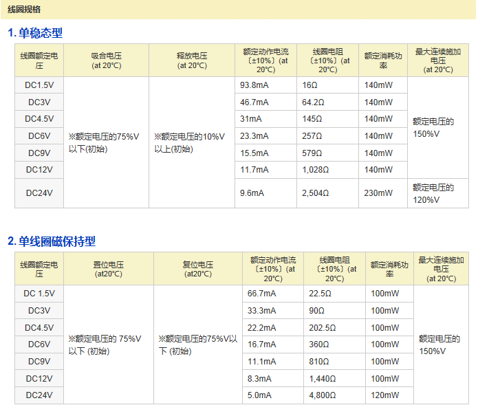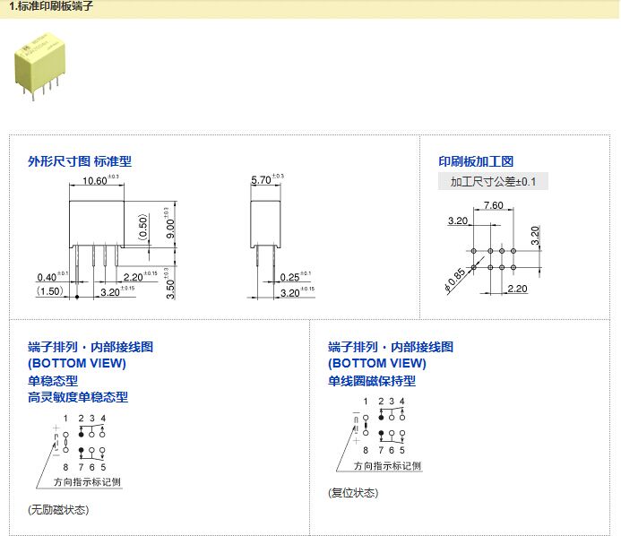 產品說明:高靈敏度 消耗功率100mW 2c1A窄長型繼電器